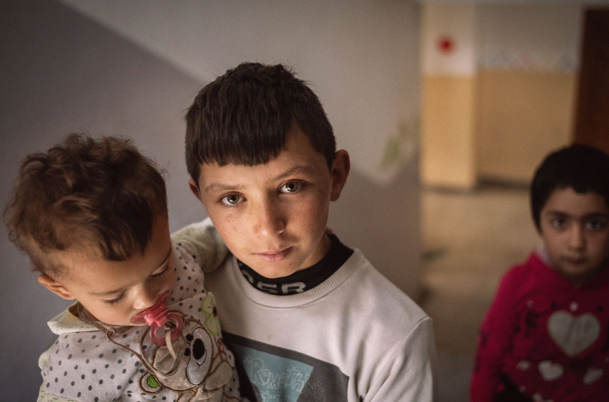 Una escuela reconvertida en refugio en Hasaka, en el noreste de Siria. De tres pisos. Triste, reventada, casi en ruinas. Treinta y cuatro familias viven aquí. Treinta y cuatro familias, treinta y cuatro huidas, treinta y cuatro sueños. Para todas estas personas, la guerra no ha acabado. Peor aún: tuvieron que huir cuando la guerra de la que todo el mundo hablaba, al menos sobre el papel, acabó.