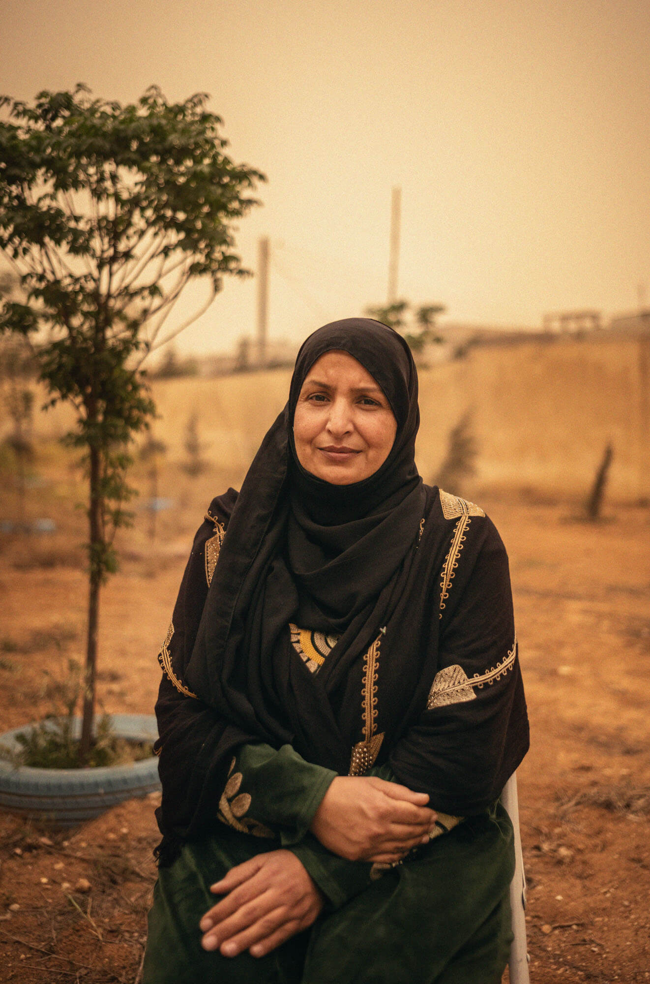 Aquí trabaja Fátima. Es de Tel Abyad, cerca de la frontera con Turquía, y llegó aquí, a este pueblo a las afueras de Raqqa, en 2018. Tiene el fuego de la supervivencia y la cautela de la humildad grabados en la mirada.